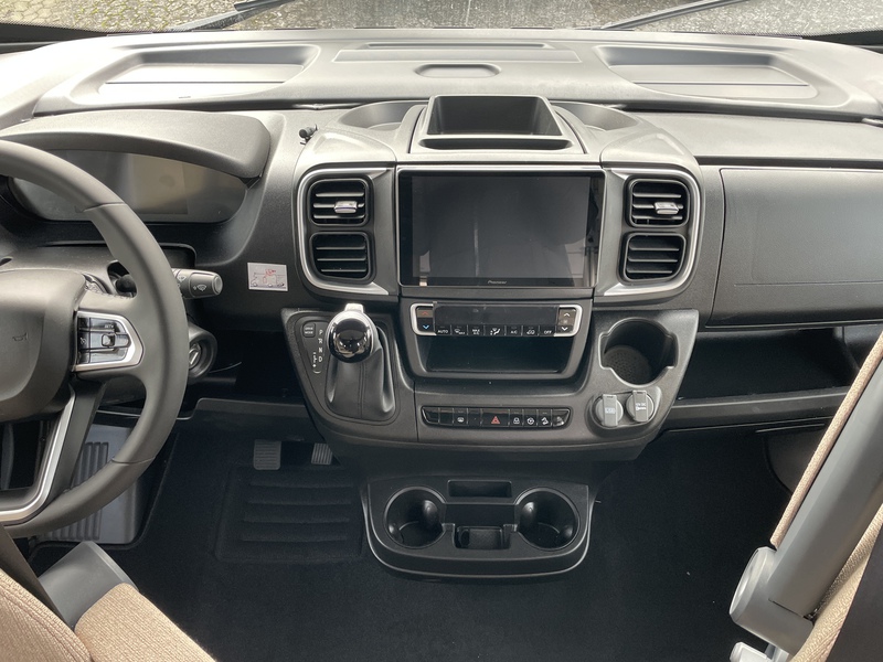 Fahrgestell: FIAT Euro 6, 2,2L, Frontstoßstange lackiert in Kabinenfarbe, Tagfahrlicht (DRL), Rückspiegel elektrisch und beheizt, elektrische Fensterheber, Zentralverriegelung mit Fernbedienung, ABS+ESP, Traction Plus + Hill Descent Control, Tempomat mit Geschwindigkeitsbegrenzer, drahtlose Ladestion für Mobiltelefone, manuelle Klimaanlage im Fahrerhaus, Fahrer- und Beifahrerairbag, Lenkradfernbedienung, Lenkrad mit Tiefenverstellung, Höhenverstellbarer und drehbarer Fahrer- und Beifahrersitz, 2 Armlehnen, Rücklehnenverstellung