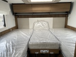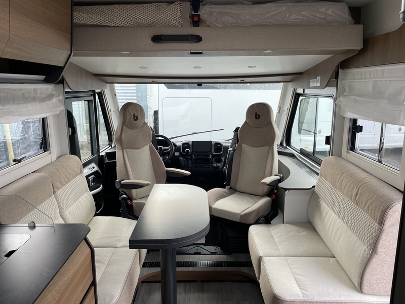 Innenraum: MALAGA+RAW MATT BLACK-Mobiliar, Obere Schränke Ambiente LED-Beleuchtung, Lautsprecher im Wohnbereich, Schubladen mit Softclose, Kissen mit wechselbaren Bezügen, erleichteter Einstieg ins Hubbett durch Anpassung der Möbel im Aufbau, ausziehbarer Esstisch, Doppeltrenntür zwischen Schlafzimmer und Wohnraum, Hubbett 2 Schlafplätze (max.230Kg), Einzelbetten umbaubar zu großem Doppelbett (170 cm x 210 cm), Innentür mit direktem Zutritt zur Garage, Schubladen unter dem Bett, LED-Licht am Kopfteil des Bettes, Indirekte Beleuchtung am Bettpaneel, USB-Steckdose im Schlafbereich, Schrankbeleuchtung, beleuchtete Dekorationspaneele, 4 dekorative Kissen passend zum neuen Möbeldesign, 22A Batterieladegerät mit Lithium-Option
