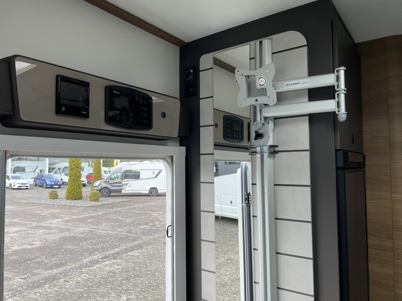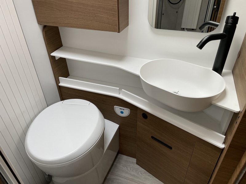 Winter-Paket: Isolierter und beheizter Abwassertank, Trittstufe isoliert, isolierte Außenheizungsrohre, ALDE-Fußbodenheizung , Isoliermatten im Fahrerhausfenster, 16" Alufelgen, Frontstossstange lackiert in Kabinenfarbe, Tagfahrlicht LED, vordere Nebelscheinwerfer, elektrische Fensterheber, Verdunklungsvorhänge, Armaturenbrett mit kabellosem Ladegarät + USB, ABS+ESP, Traction Plus, elektrische Handbremse, Tempomat mit Geschwindigkeitsbegrenzer, manuelle Klimaanlage im Fahrerhaus, Fahrer- und Beifahrerairbag, Lenkrad mit Tiefenverstellung, Radio DAB+Bluetooth+USB+Touchscreen 7", Lenkradfernbedienung, höhenverstellbarer und drehbarer Fahrer- und Beifahrersitz, 2 Armlehnen mit Rücklehnenverstellung, Sitzbezüge im Fahrerhaus wie im Wohnraum, Karosserie und Unterboden in Polyester, Seitenwände und Dach mit holzfreiem Aufbau, Fenster mit Doppelverglasung Dometic D-LUX, Sicherheitstür mit 2 Verriegelungsbolzen, Zentralverriegelung, Fenster mit Moskitonetz und Mülleimer, elektrische Einstiegsstufe, Gleitschiene in der Garage, Gepäckbefestigungssystem in der Garage, 230 V - und 12V-Steckdosen in der Garage, Schlösser an den Außenklappen, Design-Heck mit integriertem Spoiler, Heckstoßstange mit LED-Leuchten, Rückfahrsensoren, Dinettensitze mit ISOFIX, Kissen mit wechselbaren Bezügen, Schubladen mit Softclose, Lautsprecher im Wohnbereich, Innenraumbeleuchtung mit LED, Holzbank im Fahrerhaus mit zusätzlicher Stufenfunktion, neues Möbeldesign MALAGA, Trenntür zwischen Schlafzimmer und Sitzgruppe, Hubbett 2 Personen manuell (max.230 kg), hinteres Bett mit manueller Höhenverstellung, 20cm dicke komfort Matratze im Heckbett, 150cm breites Zentralbett, LED-Licht am Kopfteil des Bettes, indirekte Beleuchtung am Bettpanel, USB Anschluss am Kopfteil des Bettes, Schrankbeleuchtung, TV-Halterung, Küche: Spülbecken und 3-Flammen-Kocher mit elektrischer Zündung, Dampfabzug, großer Kühlschrank 140 Liter mit separater Schublade mit 9 Flaschen, Fensterverschönerung, ausziehbarer Wasserhahn, beleuchteter Gewürzhalter, Küchenplattenverlängerung, Badezimmer: neue separate Dusche mit Korb und Handtuchhalter, kombinierte Heizung / Gas-Warmwasserboiler-4000W