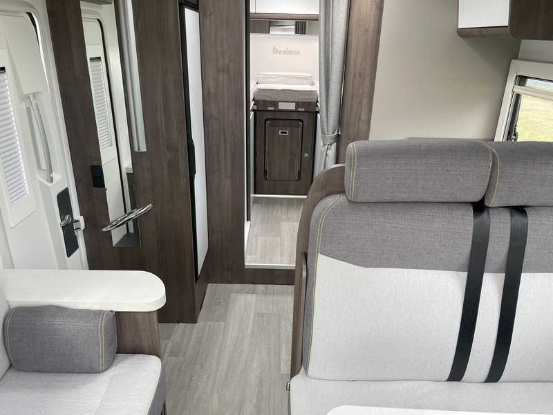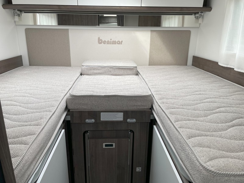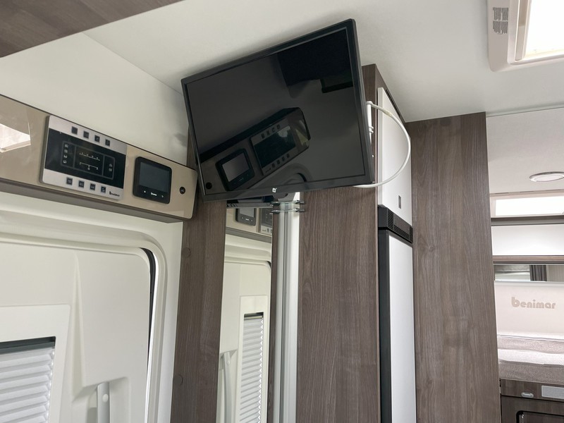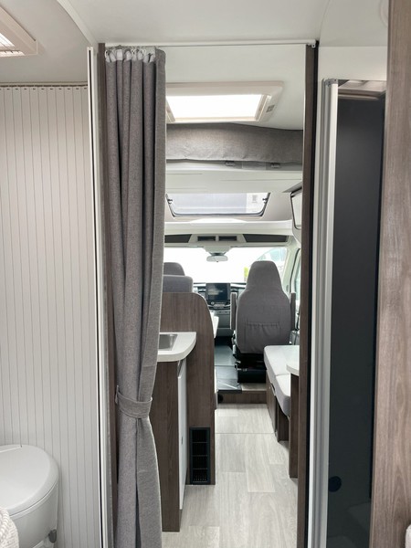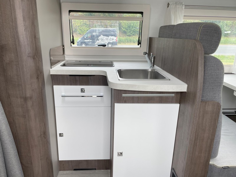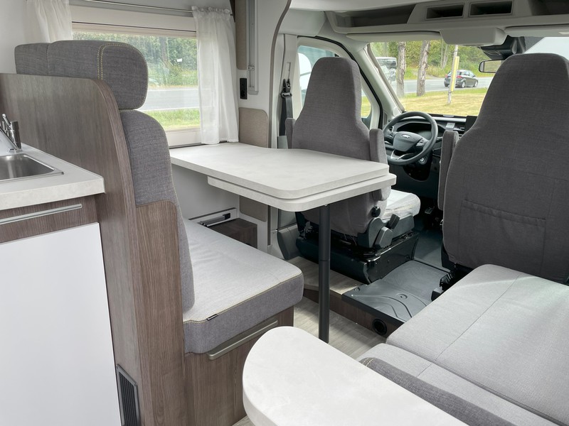 ,FORD Euro 6 - 2,0l, 165 PS, 6-Gangschaltung, 16-Zoll-Räder, schwarz glänzender Kühlergrill mit verchromten Details, Tagfahrlicht (DRL), vordere Nebelscheinwerfer, Regen- und Dämmerungssensor, Rückspiegel elektrisch und beheizt, elektrische Fensterheber, Zentralverriegelung mit Fernbedienung, ABS+ESP, Start+Stop, Berganfahrassistent (HSA), elektrische Handbremse, Tempomat mit Geschwindigkeitsbegrenzer, Fortschrittliche Fahrsysteme: intelligenter Geschwindigkeitsassistent, Verkehrszeichenerkennung, Falschfahr-Warnfunktion, Spurhalteassistent, Kollisionswarner und Einparkhilfe vorne, Reifendruckkontrollsystem, Tablet-Halterung für das Armaturenbrett, Klimaautomatik, Fahrer- und Beifahrerairbag, 12"-DAB-Radio mit Touchscreen+Rückfahrkamera, Lenkradfernbedienung, Lenkrad mit Tiefenverstellung, Verdunklungsvorhänge, höhneverstellbarer und drehbarer Fahrer- und Beifahrersitz, 2 Armlehnen, Rücklehnenverstellung, Sitzbezüge Fahrerhaus im Wohnraumdesign, Karosserie und Unterboden in Polyester, Seitenwände und Dach mit holzfreiem Aufbau, Kopfteil oberhalb des Fahrerhaus 100% aus GFK, Panoramadach im Fahrerhaus mit Moskitinetz und Verdunklungssystem (69cm x 105cm), Fenster mit Doppelverglasung Dometic D-LUX, Sicherheitstür mit Fenster, Verdunklungssystem und Mülleimer, Rückfahrsensoren, Schlösser an den Außenklappen, 230 V- und 12 V-Steckdosen in der Garage, Fixierung Fahrradhalter, Außenleuchte Aufbautür, 200-W-Solarpanel mit MPPT-Regler, Markise 4 Meter, Reise KIT: Batterie, 2 Auffahrkeile, 230 V Kabel, Wasserschlauch, Feuerlöscher, Warnweste, 2 Warndreiecke, Sanitärzusatz, neues PAMPLONA+WARM GREY-Mobiliar, Oberschränke außen & innen mit LED-Beleuchtung, Schubladen mit Softclose, Kissen mit wechselbaren Bezügen, Dinettensitze mit ISOFIX, ausziehbarer Esstisch, Innentür mit direktem Zugriff zur Garage, Hubbett elektrisch 2 Schlafplätze (230kg max.), Einzelbetten umbaubar zu großem Doppelbett (170cm x 210cm), USB-Steckdose im Schlafbereich, TV-Halterung, TV 20-Zoll mit DVB-T Antenne, Vorbereitung für 2.Aufbaubatterie im Fahrerhaus, 22 A Batterieladegerät mit Lithium-Option, Küche: Spülbecken und 2-Flammen-Kocher mit elektrischer Zündung, großer Kompressor Kühlschrank 150 Liter mit Schubladen für 9 Flaschen, beleuchteter Gewürzhalter, Küchenplattenverlängerung, Badezimmer: separate Dusche mit Korb und Hängestange, kombinierte Heizung/Diesel-Warmwasserboiler Truma 4000W