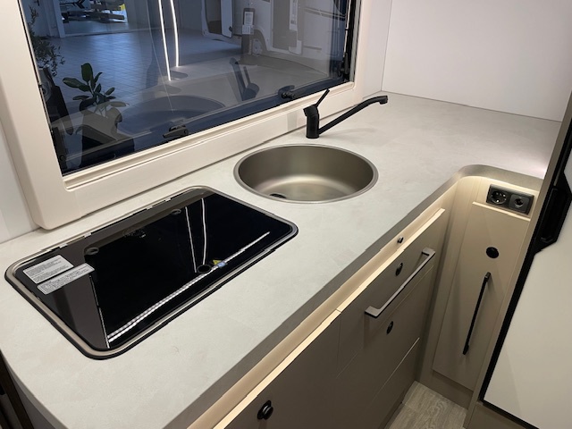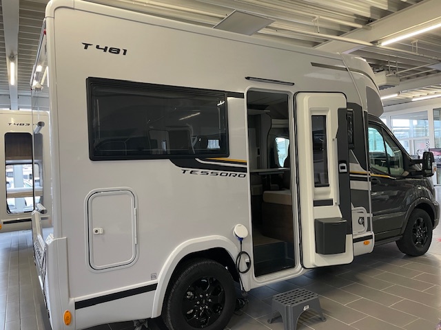 Tessoro 481 Plus-Pack: Solarpaneel 200W +MPPT Solarregler, Verdunklungsplissees, Sicherheitstür mit 2 Verriegelungsbolzen, Fenster mit Moskitonetz und Mülleimer, Sitzbezüge im Fahrerhaus wie im Wohnraum, LED-Außenleuchte Aufbautür, Halogen Kurvenlicht, Rückfahrsensoren, Deckenbeleuchtung, Rollos, ISOFIX, TV-Halterung, Vorbereitung für 2. Aufbaubatterie im Fahrerhaus, Dachfenster Skyview, abschließbares Handschuhfach, Armaturenbrett und Verkleidung TREND, Stoßfänger und Seitenleisten in Wagenfarbe lackiert, Northautokapp-Pack: Pack-Winter: Isolierter und beheizter Abwassertank, Trittstufe isoliert, erhöhte Heizleistung Webasto 5500W, Isoliermatten im Fahrerhaus, isolierte Außenheizungsrohre, Verkehrzeichenerkennung, Spurhalteassistent, Pre Collision Assistent 2,2+Navigationssystem ( Navigationskarten ohne Internet + 1 Jahr Kartenupdate), beheizbare und elektrisch einklappbare Rückspiegel, beheizte Windschutzscheibe, metallic Lackierung Magnet Grau, 16 " Alufelgen, Ford+ Bi Xenon Scheinwerfer mit LED Tagfahrlicht, Allwetterreifen, FORD Motorerweiterung von 130 PS auf 165 PS, Automatikgetriebe, spezifische Außendekoration "Northautokapp", schwarz glänzender Kühlergrill mit verchromten Details,Tagfahrlicht (DRL), vordere Nebelscheinwerfer, Regen- und Dämmerungssensor, Rückspiegel elektrisch und beheizt, elektrische Fensterheber, Zentralverriegelung mit Fernbedienung, ABS+ESP, Start&Stop, Berganfahrassistent (HSA), elektrische Handbremse, Tempomat mit Geschwindigkeitsbegrenzer, fortschrittliche Fahrsysteme: intelligenter Geschwindigkeitsassistent, Verkehrszeichenerkennung, Falschfahr-Warnfunktion, Spurhalteassistent, Kollisionswarner und Einparkassistent vorne, Reifendruckkontrollsystem, Tablet-Halterung für das Armaturenbrett, Klimaautomatik, Fahrer- und Beifahrerairbag, 12" DAB-Radio mit Touchscreen + Rückfahrkamera, Lenkradfernbedienung, Lenkrad mit Tiefenverstellung, Verdunklungsvorhänge, höhenverstellbarer und drehbarer Fahrer- und Beifahrersitz, 2 Armlehnen, Rücklehnenverstellung, Sitzbezüge Fahrerhaus im Wohnraumdesign, Karosserie und Unterboden in Polyster, Seitenwände und Dach mit holzfreiem Aufbau, Kopfteil oberhalb des Fahrerhaus 100% GFK, Fenster mit Doppelverglasung Dometic D-LUX, Heckstoßstange mit LED-Leuchten, Schlösser an den Außenklappen, 230V- und 12V-Steckdosen in der Garage, Fixierung Fahrradhalter, Innenraum:neues PAMPLONA+ WARM GREY-Mobiliar, obere Schränke Ambiente LED-Beleuchtung, Schubladen mit Softclose, Kissen mit wechselbaren Bezügen, höhenverstellbarer elektrischer Teleskop-Esstisch, Hubbett elektrisch 2 Schlafplätze (max.230kg), USB-Steckdosen im Schlafbereich, 22A Batterieladegerät mit Lithium-Option, Küche: Spülbecken und 2-Flammen-Kocher mit elektrischer Zündung, großer Kompressor Kühlschrank 150 Liter mit Schublade für 9 Flaschen, Apothekerschrank, beleuchteter Gewürzhalter, Badezimmer: separate Dusche mit Korb und Hängestange, Duschplattform, Heizung: Webasto Dieselheizung 5500W, Gas-Warmwasserboiler