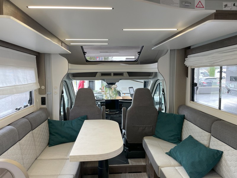 Benimar Tessoro 488 FORD Euro 6, 2,0 l, Automatikgetriebe, 165 PS, PLUS-Pack: Solarpaneel 200W+MPPT Solarregler, Verdunklungsplissees, Sicherheitstür XL mit 2 Verriegelungbolzen, Fenster mit Moskitonetz und Mülleimer, Sitzbezüge im Fahrehaus wie im Wohnraum, LED-Außenleuchte Aufbautür, Halogen Kurvenlicht, Rückfahrsensoren, Deckenbeleuchtung, Rollos, ISOFIX, TV-Halterung, Vorbereitung für 2.Aufbaubatterie im Fahrerhaus, Dachfenster Skyview, abschließbares Handschuhfach, Armaturenbrett und Verkleidung "Trend", Stoßfänger und Seitenleisten in Wagenfarbe lackiert, 16-Zoll-Räder, schwarz glänzender Kühlergrill mit verchromten Details, Tagfahrlicht (DRL), vordere Nebelscheinwerfer, Regen- und Dämmerungssensor, Rückspiegel elektrisch und beheizt, elektrische Fensterheber, Zentralverriegelung mit Fernbedienung, ABS+ESP, Start&Stop, Berganfahrassistent (HSA), elektrische Handbremse, Tempomat mit Geschwindigkeitsbegrenzer, Fortschrittliche Fahrsysteme: intelligenter Geschwindigkeitsassistent, Verkehrszeichenerkennung, Falschfahr-Warnfunktion, Spurhalteassistent, Kollisionswarner und Einparkassistent vorne, Reifendruckkontrollsystem, Tablet-Halterung für das Armaturenbrett, Klimaautomatik, Fahrer- und Beifahrerairbag, 12"-DAB-Radio mit Touchscreen+Rückfahrkamera, Lenkradfernbedienung, höhenverstellbarer und drehbarer Fahrer- und Beifahrersitz, 2 Armlehnen, Rücklehnenverstellung, Karosserie und Unterboden in Polyster, Seitenwände und Dach mit holzfreiem Aufbau, Kopfteil oberhalb des Fahrerhaus 100% aus GFK, Fenster mit Doppelverglasung Dometic D-LUX, Heckstoßstange mit LED-Leuchten, Schlösser an den Außenklappen, 230 V- und 12 V-Steckdosen in der Garage, Fixierung Fahrradhalter, neues PAMPLONA + WARM GREY-Mobiliar, obere Schränke Ambiente LED-Beleuchtung, Schubladen mit Softclose, Kissen mit wechselbaren Bezügen, höhenverstellbarer elektrischer Teleskop-Esstisch, Innentür mit direktem Zugriff zur Garage, Hubbett elektrisch 2 Schlafplätze (max.230kg), USB-Steckdose im Schlafbereich, 4 dekorative Kissen passend zum neuen Möbeldesign, 22A Batterieladegerät mit Lithium-Option, Küche: Spülbecken und 2-Flammen-Kocher mit elektrischer Zündung, großer Kompressorkühlschrank 150 Liter mit Schublade für 9 Flaschen, Apothekerschrank, beleuchteter Gewürzhalter, Küchenplattenverlängerung, Badezimmer: separate Dusche mit Korb und Hängestange, Duschplattform, Webasto Dieselheizung 4000W, Gas-Warmwasserboiler